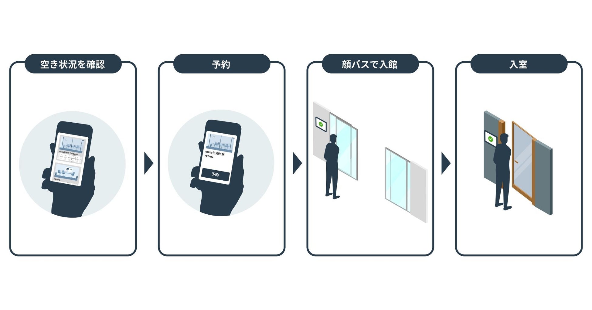 「workhub」は、顔認証による入館から、会議室の予約、ゲストの受付まで一つのIDでシームレスに利用できる特長から、「集まる」ことのハードルを下げられると評価され、このたびの「owns」全物件への導入が決まりました。