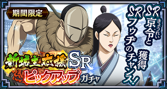 SR★4武将排出確率が通常時と⽐べて6倍にUPします!