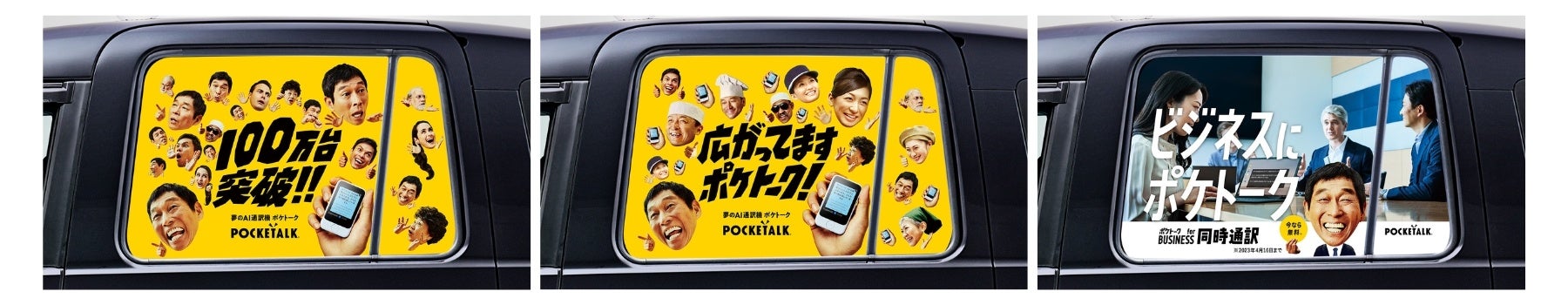 本タクシーは、タクシーアプリ「S.RIDE」で配車が可能であり、アプリ上のアイコンには、「ポケトーク」のアンバサダーである明石家さんまさんが登場。車窓には、計3種類の明石家さんまさんを起用したポケトークのイメージ画像を投影し、車内では「ポケトーク」の製品情報や実機を使用するトライアルコンテンツを放映します。そのほか、画面に表示されたQRコードから「ポケトーク」の購入も可能です。