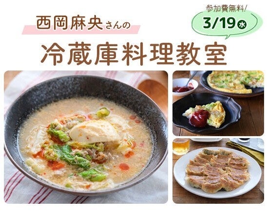 生鮮食品の長持ち保存や、肉や魚を解凍せずに使える機能など、毎日の料理に大活躍する三菱冷蔵庫。その魅力や冷凍室で野菜を便利に保存できる最新機能を体験できる特別イベントに合計24名様を無料でご招待します♪ お連れ様をお誘いいただいての参加もOK! オリジナルレシピの調理体験や試食のほか、冷蔵庫の活用術も学べますよ。講師は人気Nadia Artistの西岡麻央さん。ふるってご応募ください♪