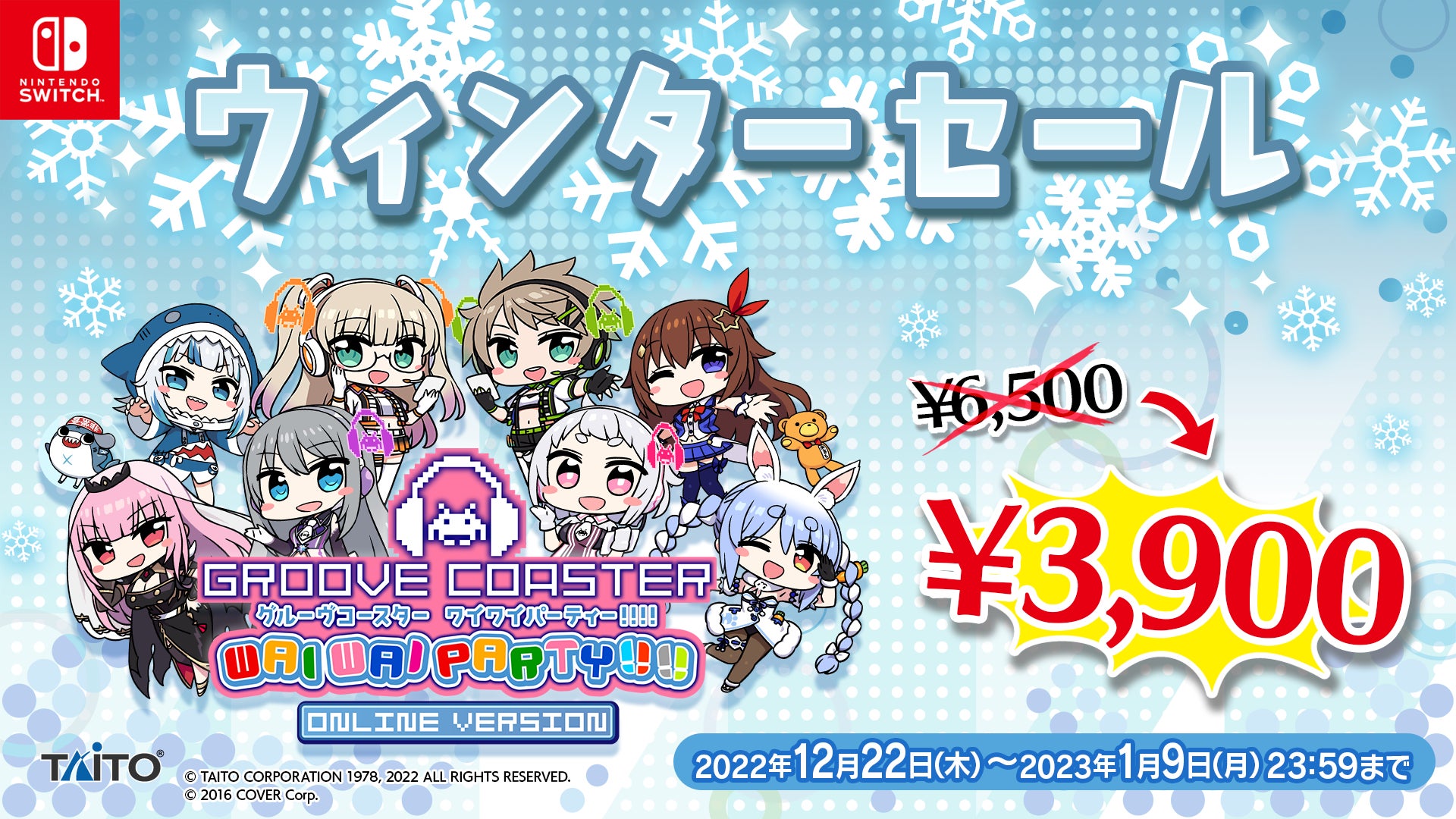 株式会社タイトー(本社:東京都新宿区、以下タイトー)は、Nintendo Switch™ダウンロード専用ソフト『グルーヴコースター ワイワイパーティー!!!!』にて、ホロライブプロダクション所属の人気VTuber「兎田ぺこら」と「森カリオペ」やグルーヴコースターの新ナビゲートキャラクター、アバターの追加、新たな楽曲追加に伴う無償のアップデートを本日12月22日(木)に実施しました。また、無償アップデートを記念して、本体ソフトおよび人気曲を多数収録したDLC(ダウンロードコンテンツ)がお得に購入できるセールを開催します。