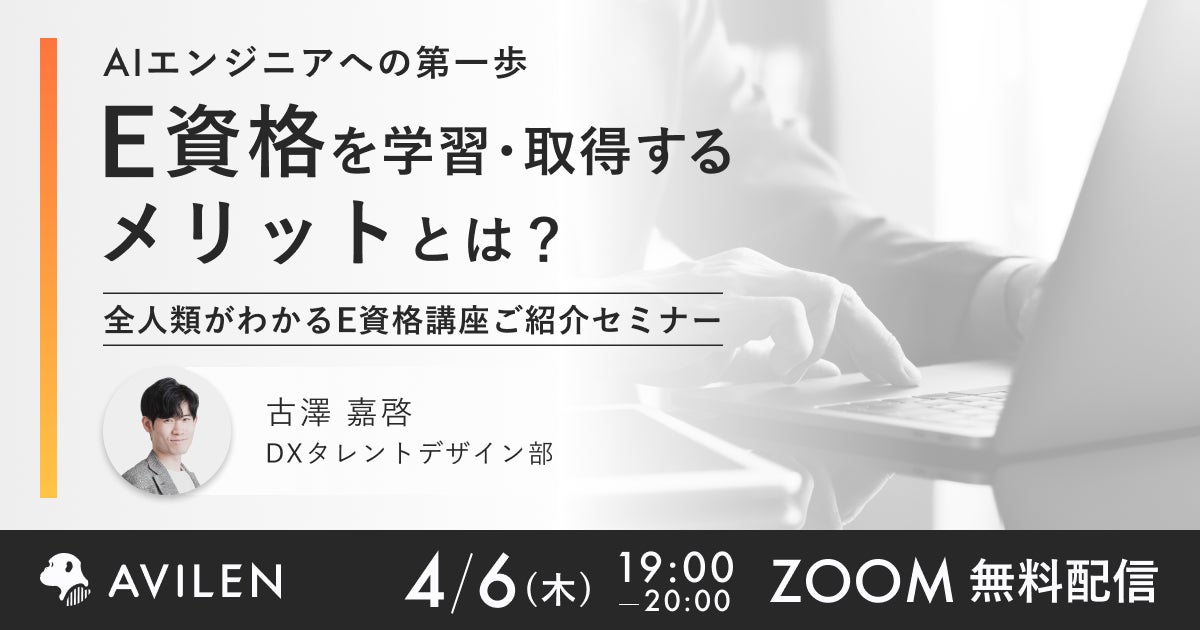 株式会社AVILEN(東京都中央区 代表取締役 高橋 光太郎 以下、AVILEN)は、一般社団法人日本ディープラーニング協会(以下、JDLA)による「E資格2023#1」の結果発表を受け、合格者253名を輩出し、5期連続で合格者数No.1(※)を達成したことをご報告します。