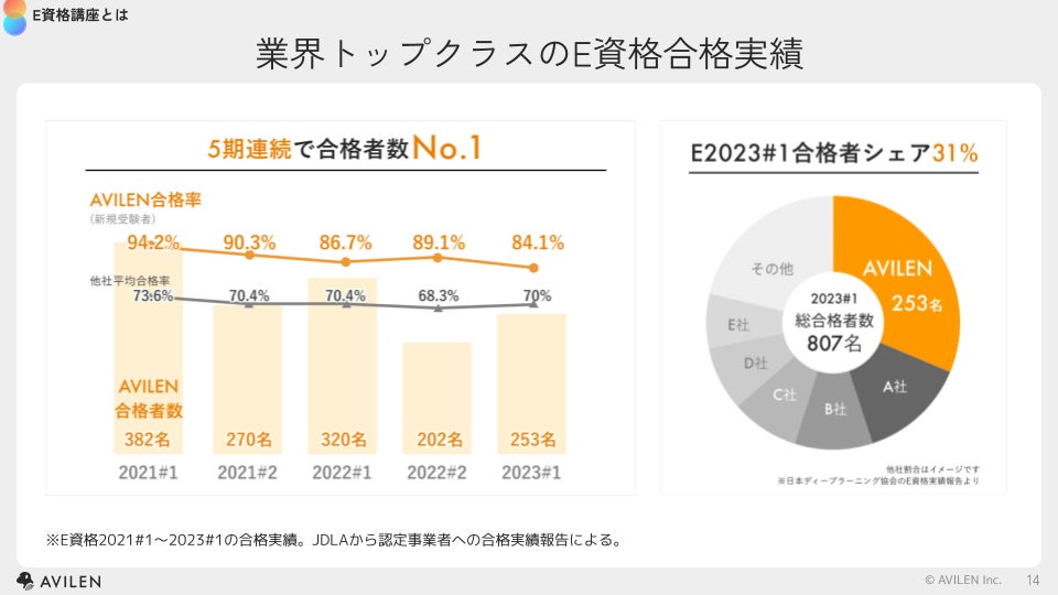 AVILEN、5期連続でE資格の合格者数No.1を達成! 2023#1は253名を輩出し、シェア31%を獲得