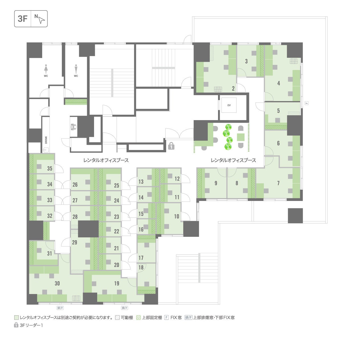 席数:【コワーキングスペース】44席/【レンタルオフィス】35戸