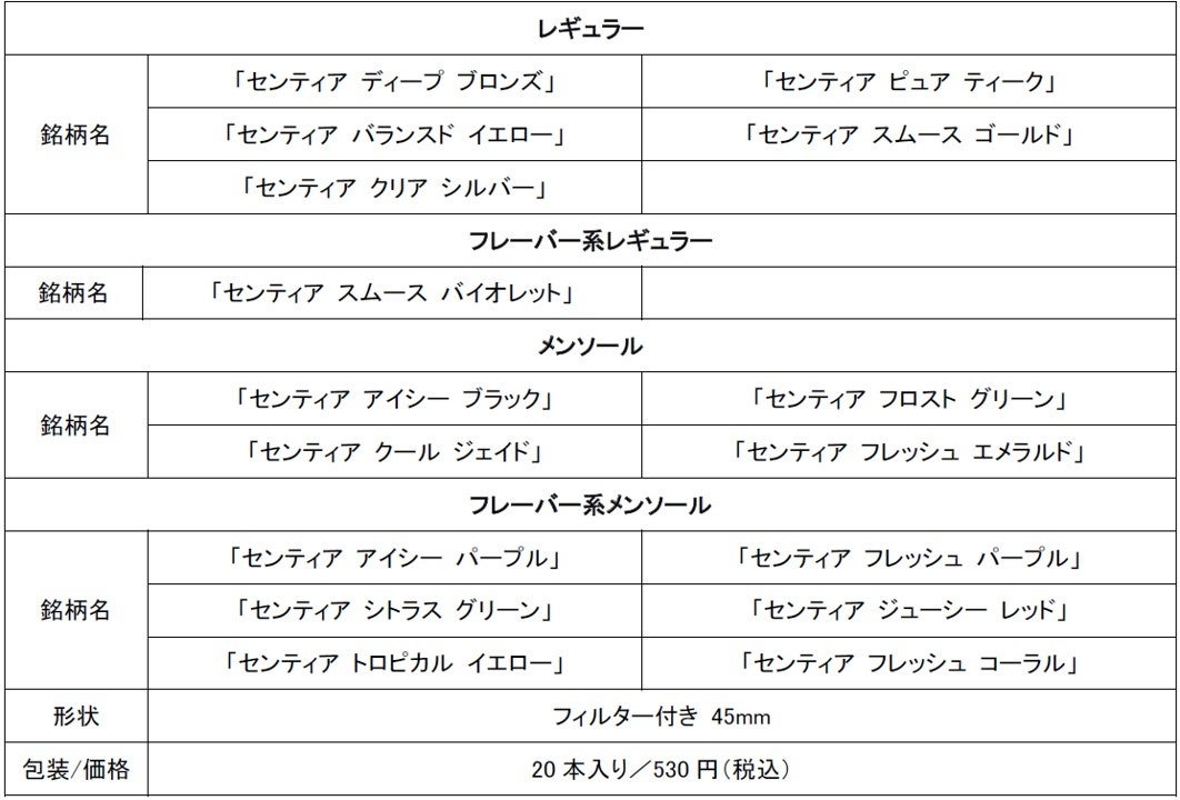 今回の「センティア アイシー レッド」の発売に伴い、「SENTIA(センティア)」製品のラインアップは全17銘柄となります。