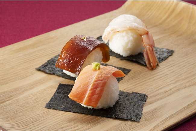 (左から)ローストビーフ、海鮮手まり寿司