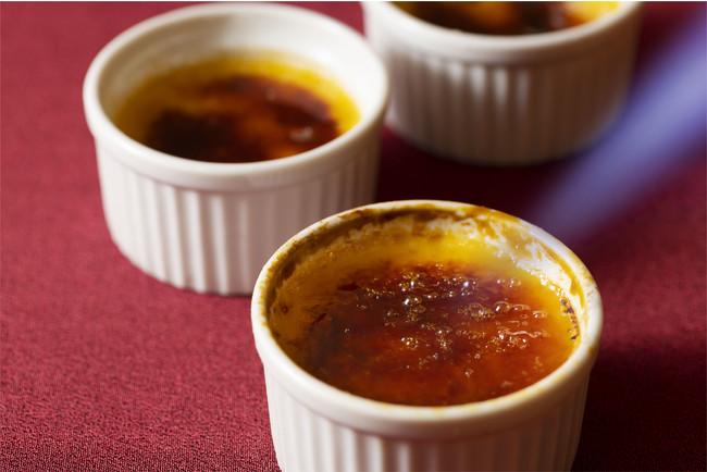 〇スモークダックのクレープ包み 〇クレームブリュレ