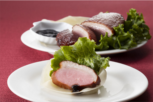 (左から)スモークダックのクレープ包み、クレームブリュレ