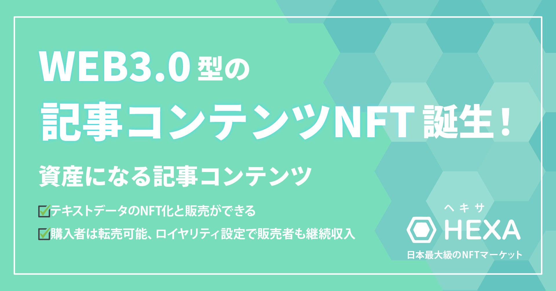 記事・情報コンテンツをデジタル資産NFTとして販売できる機能搭載!NFTマーケットのHEXA(ヘキサ)で有料コンテンツ販売を消費型から投資型に