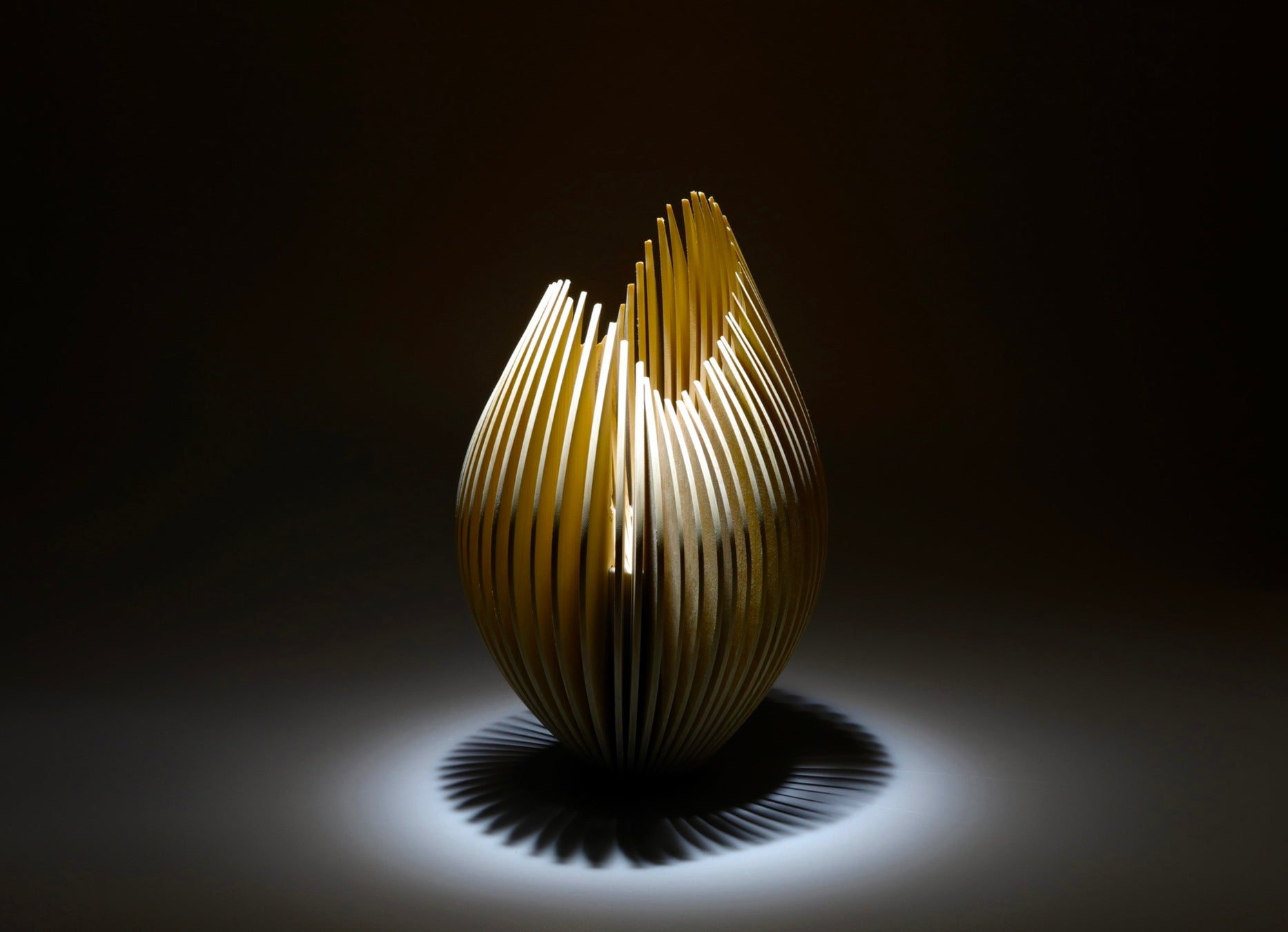 大樋窯は今回の地震で甚大な被害を受け、両氏の作品だけでなく、歴代の作品も多数損壊し、金沢市内の大樋美術館やギャラリーの被災箇所の修復、工房の再建や窯の復興に日々全力を注いでいます。そのような環境下でも「創る」ことへの灯を絶やすことなく制作に励み、十一代は多数損壊した歴代作品の破片や断片をコラージュしたオブジェを、十二代は代表作「Bone Flower」を復興への祈願を込めて「能登ヒバ」によって制作しています。