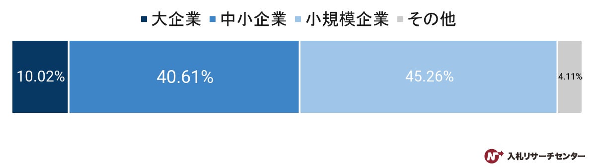 全省庁統一資格を新たに取得した新規企業のうち、中小企業は40.61%、小規模企業は45.26%となりました。