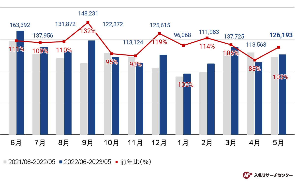 2023年5月の落札案件数の総計は126,193件で、前年比103%となりました。