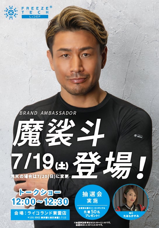 “喜びを企画して世の中を面白くする”商品を流通させる株式会社リベルタ(本社:東京都渋谷区、東証スタンダード:4935)の機能衣料ブランド「LIDEF」が展開するクーリングウェア・ギアブランドの「フリーズテック」にて、ブランドアンバサダー魔裟斗さんのイベント開催が決定しました。