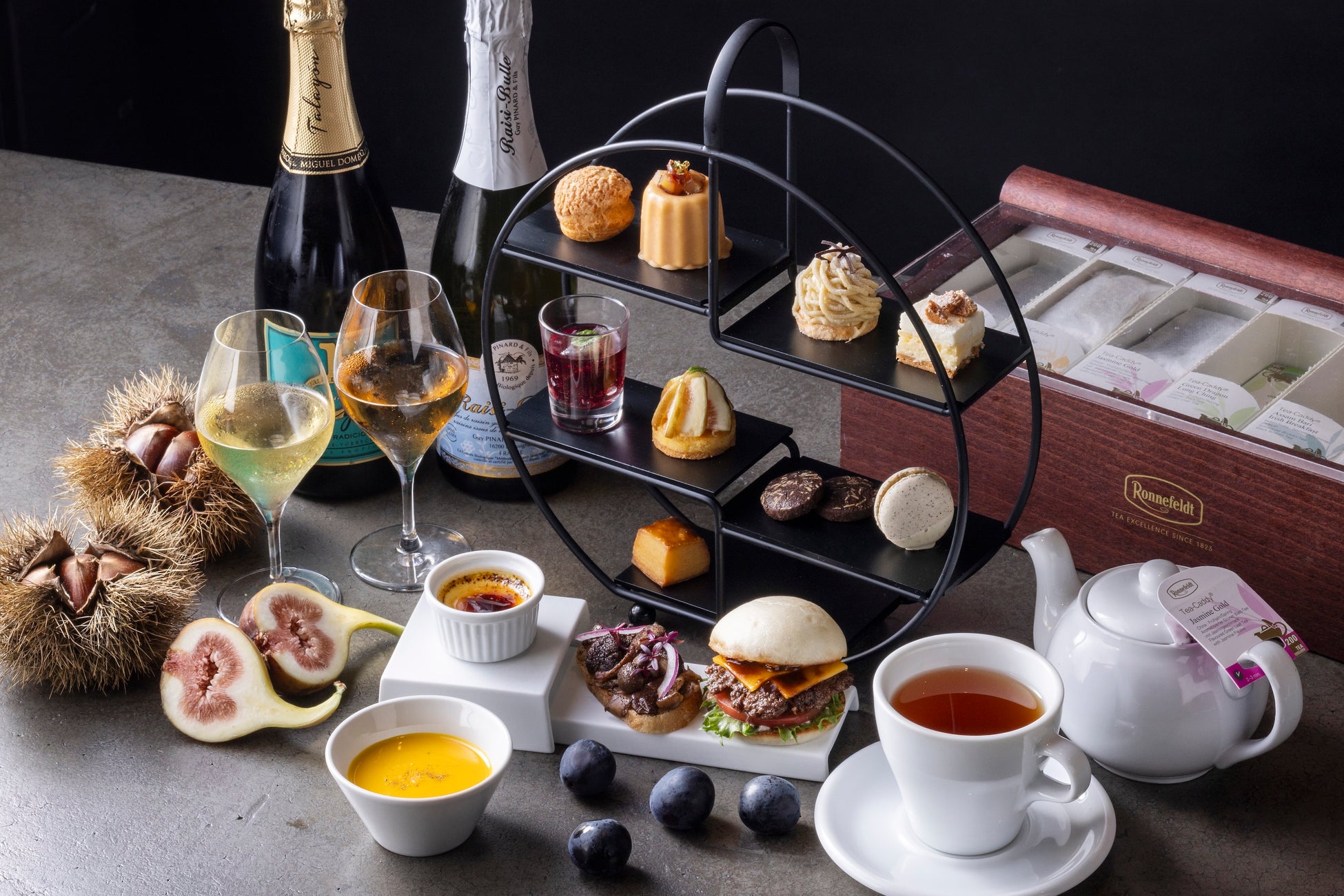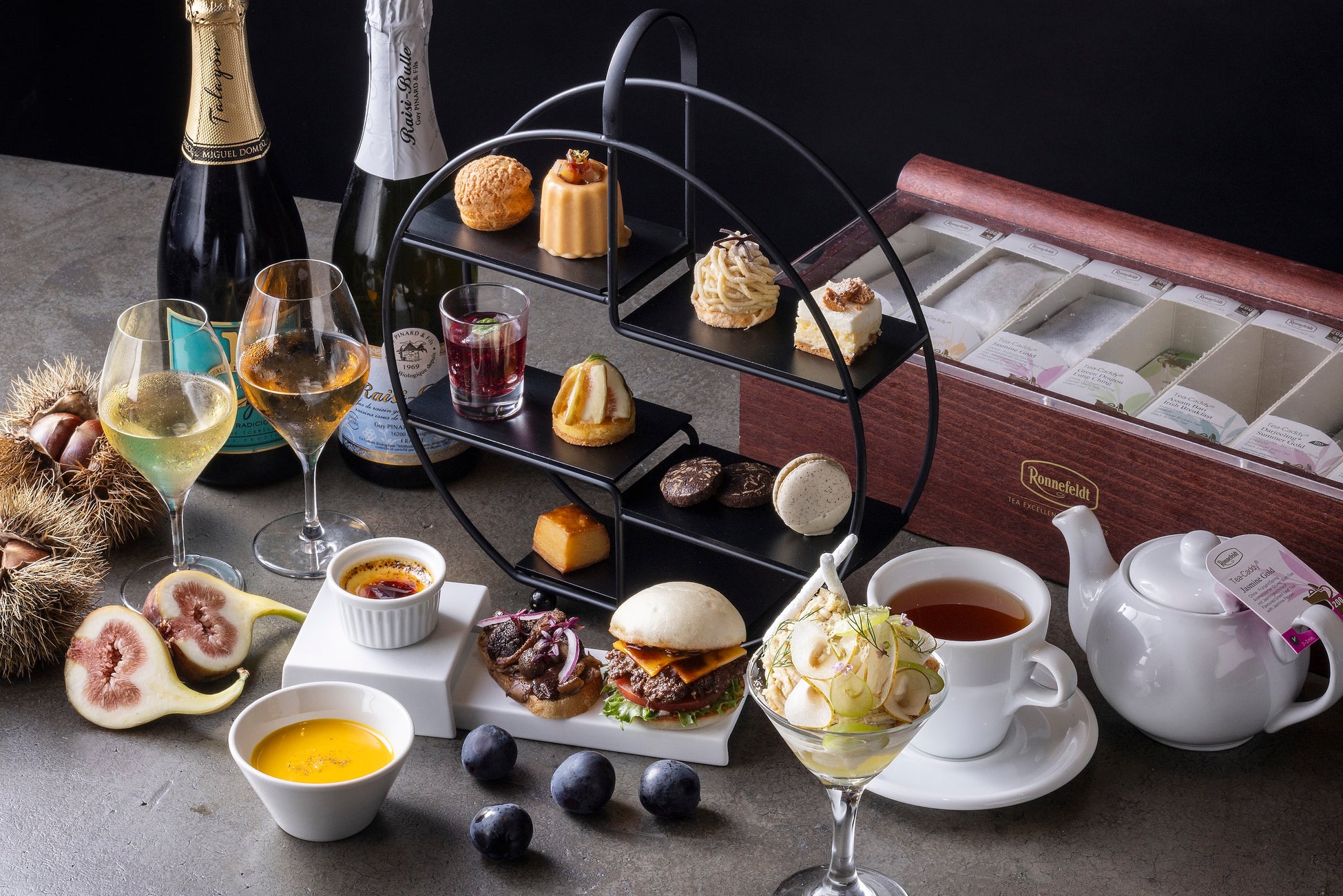 東京・青山の人気デザートサロン「EMME」のオーナー・パティシエ延命寺美也氏が監修するフレッシュフルーツタルト専門店「白井屋ザ・パティスリー」によるアフタヌーンティーでは、和栗のモンブラン、葡萄のジュレ、無花果のタルトなどパティシエたちがひとつひとつ丁寧に手づくりするスイーツ10種と「白井屋ザ・レストラン」シェフ片山ひろが生み出す2種のセイボリーをロンネフェルトの紅茶を含む飲み放題のドリンク、温かいかぼちゃのスープと共にご用意します。さらに秋味を満喫されたい方には、和栗と和梨の特製パフェも合わせてご注文いただけます。