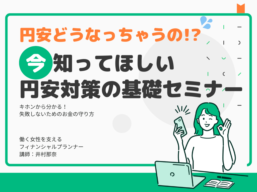 このセミナーは、「最近円安ってよく聞くけど生活にどんな影響があるの?」「円安対策って何をすれば良いの?」など漠然とした不安を持っている方向けのセミナーです。