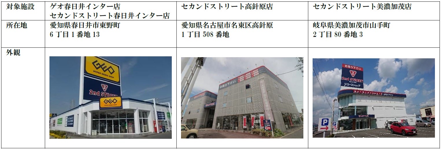 本PPAの仕組みを用いた電力供給は、「ゲオ春日井インター店」「セカンドストリート春日井インター店」「セカンドストリート高針原店」「セカンドストリート美濃加茂店」の4店舗が対象となり、温室効果ガス排出量の削減効果(非化石証書含む)は、年間約255トンを見込んでいます。