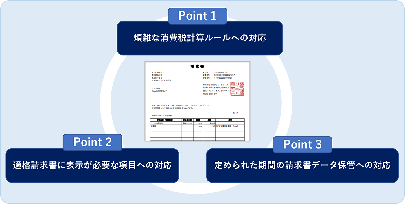 このたびのインボイス制度への対応では、法令遵守に加えて、お客様のご要望に合わせて、独自の適格請求書要件にも対応可能です。