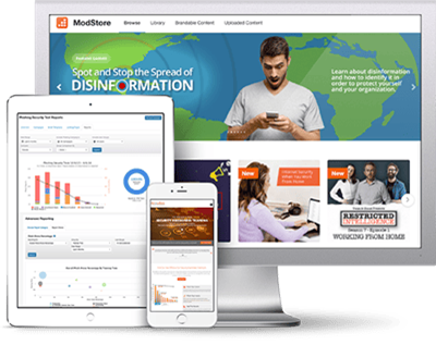 *セキュリティ意識向上トレーニングとフィッシングシミュレーション・分析を組み合わせた世界最大のKnowBe4のクラウド型統合プラットフォームは、増加し続けるフィッシング攻撃に対応する最新の模擬フィッシング/ランディングページ演習テンプレート(20,000種以上)に加えて、日々巧妙化するハッカーの手口に対抗するための様々なトレーニングコンテンツ(340種のインタラクティブトレーニングモジュール、545種の動画トレーニングモジュール、1437種のセキュリティ教育/トレーニングコンテンツ)を提供しています(2023年2月末現在)。