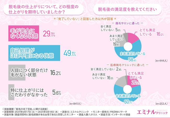 そのような背景から、どの程度の方が脱毛後の仕上がりに満足しているのでしょうか。