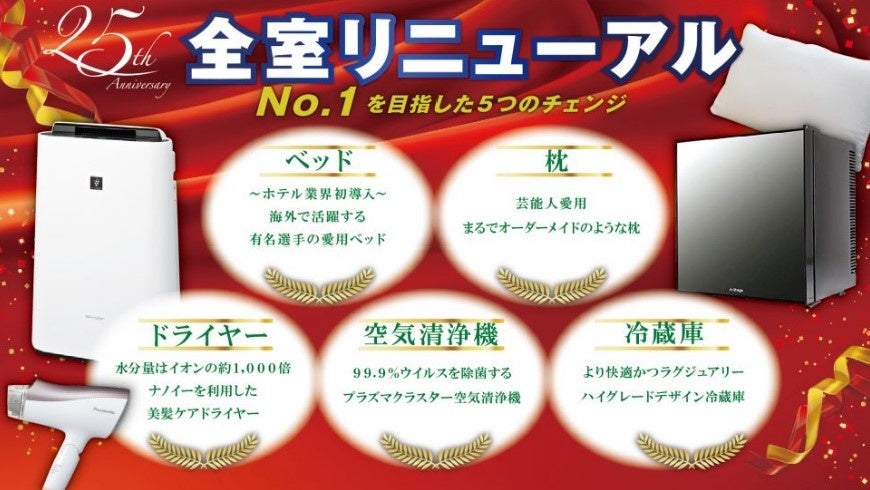 信和グループ・信和ホテルズ株式会社(本社:神戸市東灘区、代表取締役:前田 裕幸)が運営する「ホテルプラザ神⼾」は、開業25周年記念として、全客室のベッドや備品の一部をリニューアルいたしました。