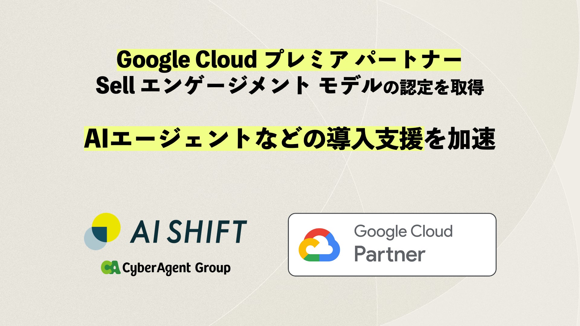 株式会社サイバーエージェント(本社:東京都渋谷区、代表取締役:藤田晋、東証プライム市場:証券コード4751)の100%子会社である株式会社AI Shift(本社:東京都渋谷区、代表取締役社長:米山結人、以下AI Shift)は、Google Cloud Partner Advantage プログラムにおいて Google Cloud プレミア パートナー Sell エンゲージメント モデル認定を取得したことをお知らせいたします。これにより、各社におけるAIエージェントの構築を加速いたします。