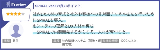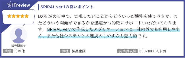 「SPIRAL ver.1」に対するITreviewユーザー評価 ※一部抜粋