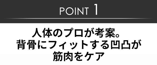 - 凹凸が背骨にフィットする人間工学設計。理学療法士、大学教授、トレーナーが共同開発