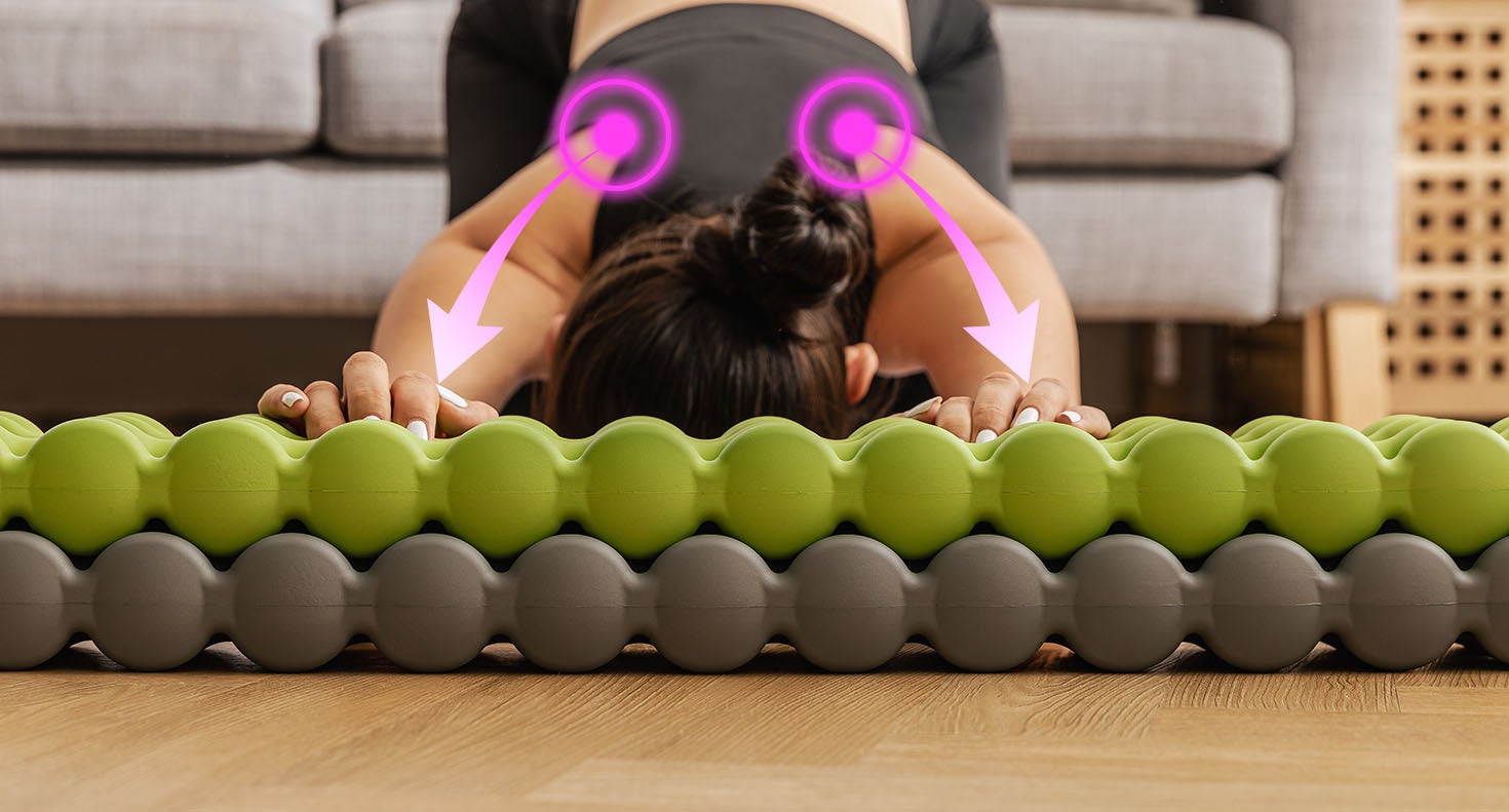 - ツボ押し、筋膜ケア、ストレッチ、筋トレを1台で実現するエクササイズマット