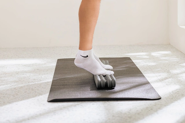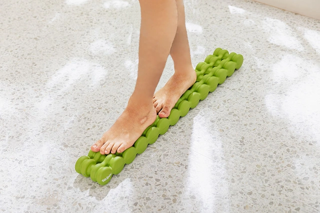 青竹踏みのように【VibSpine】の上に立って歩けば、足裏のツボも刺激できます。