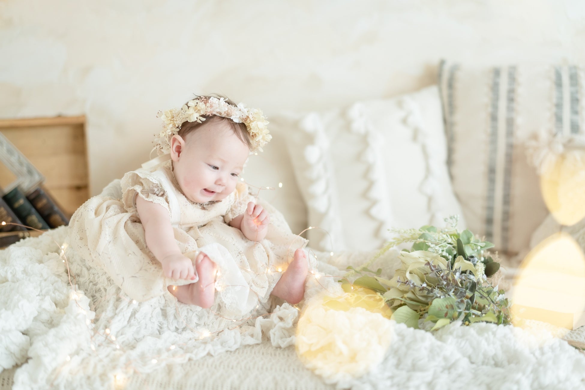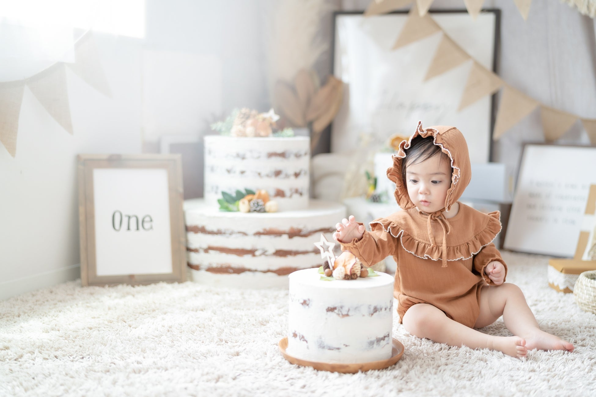 ベビー向けのお誕生日撮影にぴったりのドレス、男女でお召しになれるセットアップなどの和洋オリジナル衣装と、こだわりのオリジナルアイテムが叶えるお写真で、コフレならではの特別な世界観をお楽しみいただけます。
