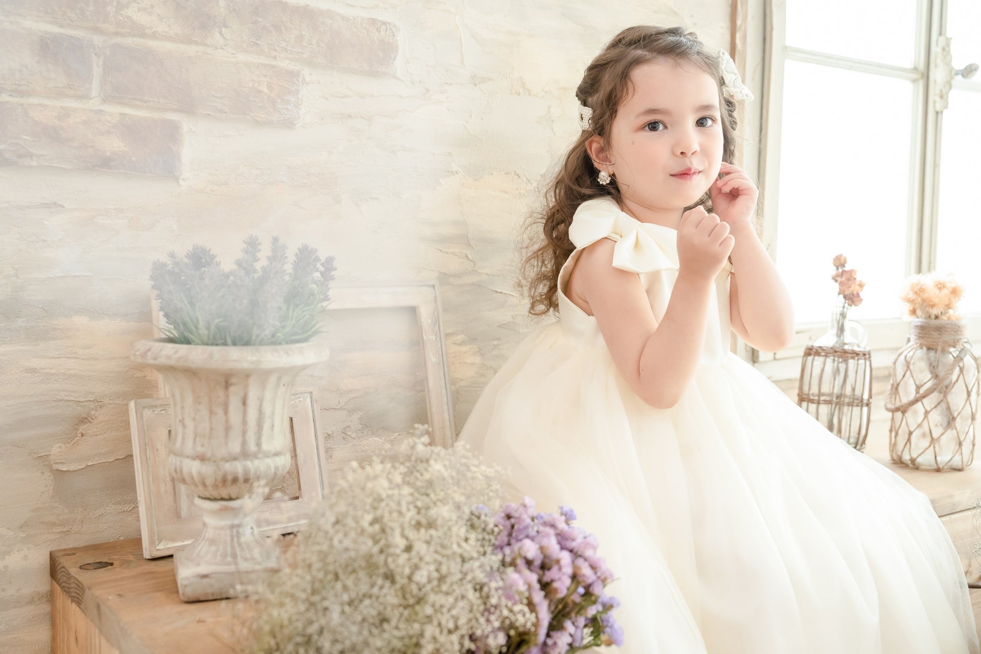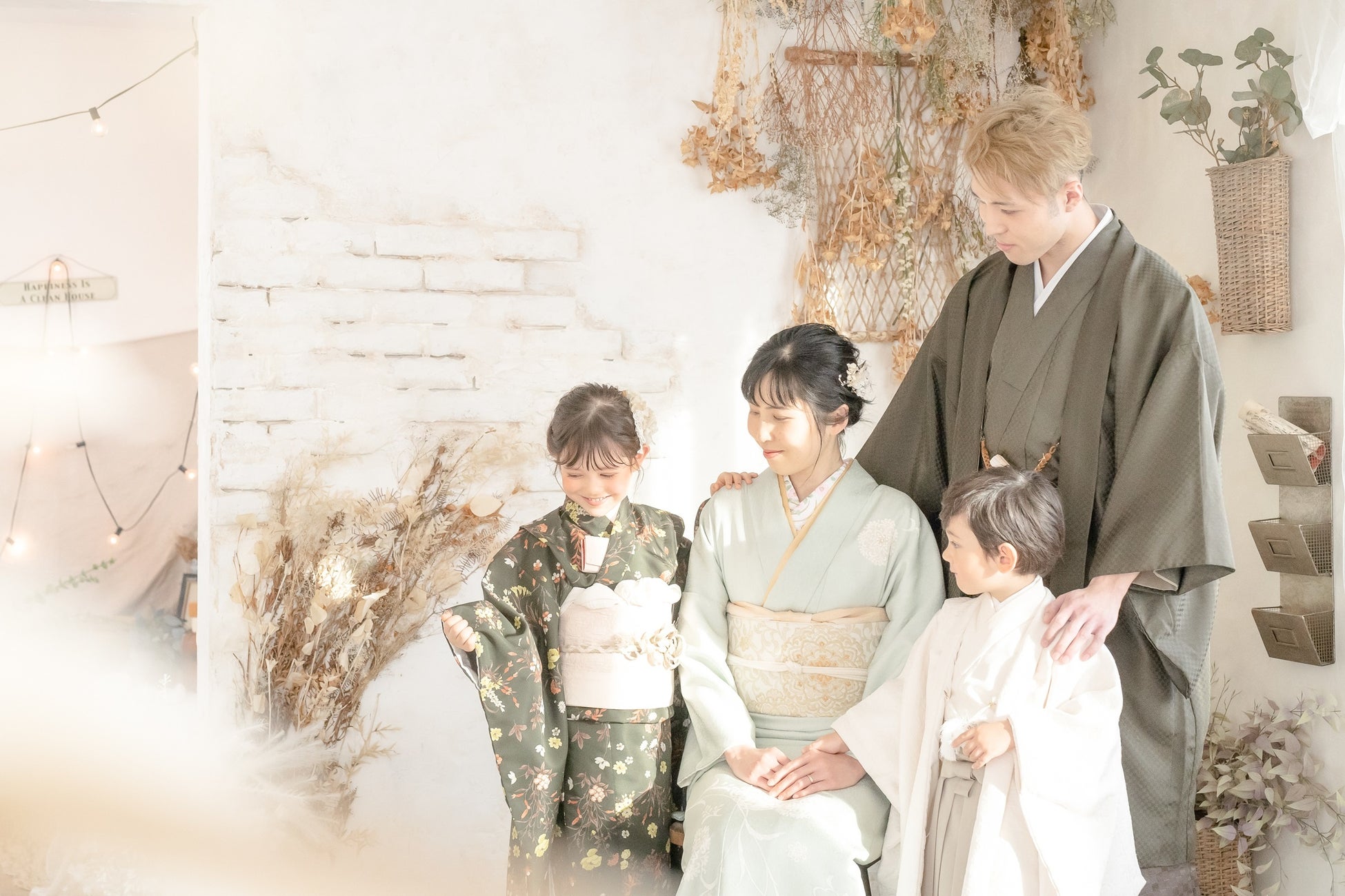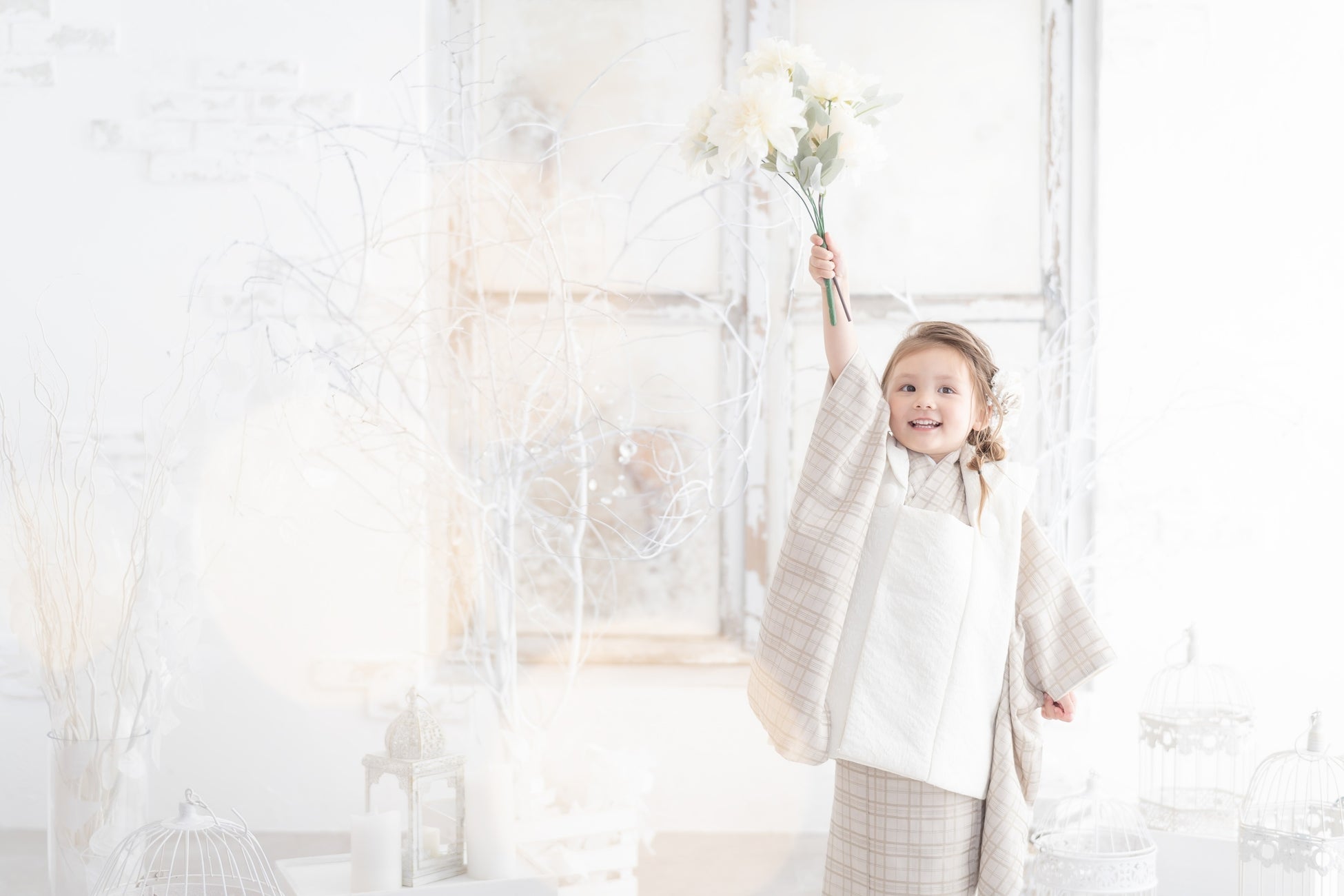 ~お子さまの成長の節目は、ゆったりと時間が流れるプライベート空間で。⾊合いにも質感にもこだわったコフレオリジナルのお⾐装で七五三やバースデーフォト、お食い初めなども~