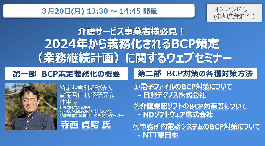 【介護サービス事業者様必見!】2024年から義務化されるBCP策定(業務継続計画)に関するウェブセミナー