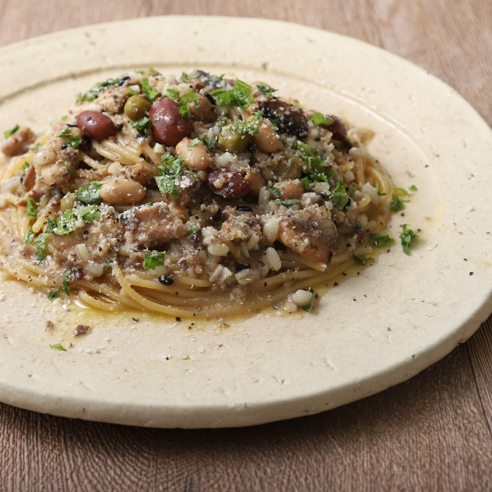 1.どっさりお豆と鰯味噌パスタ(寺井幸也先生考案)