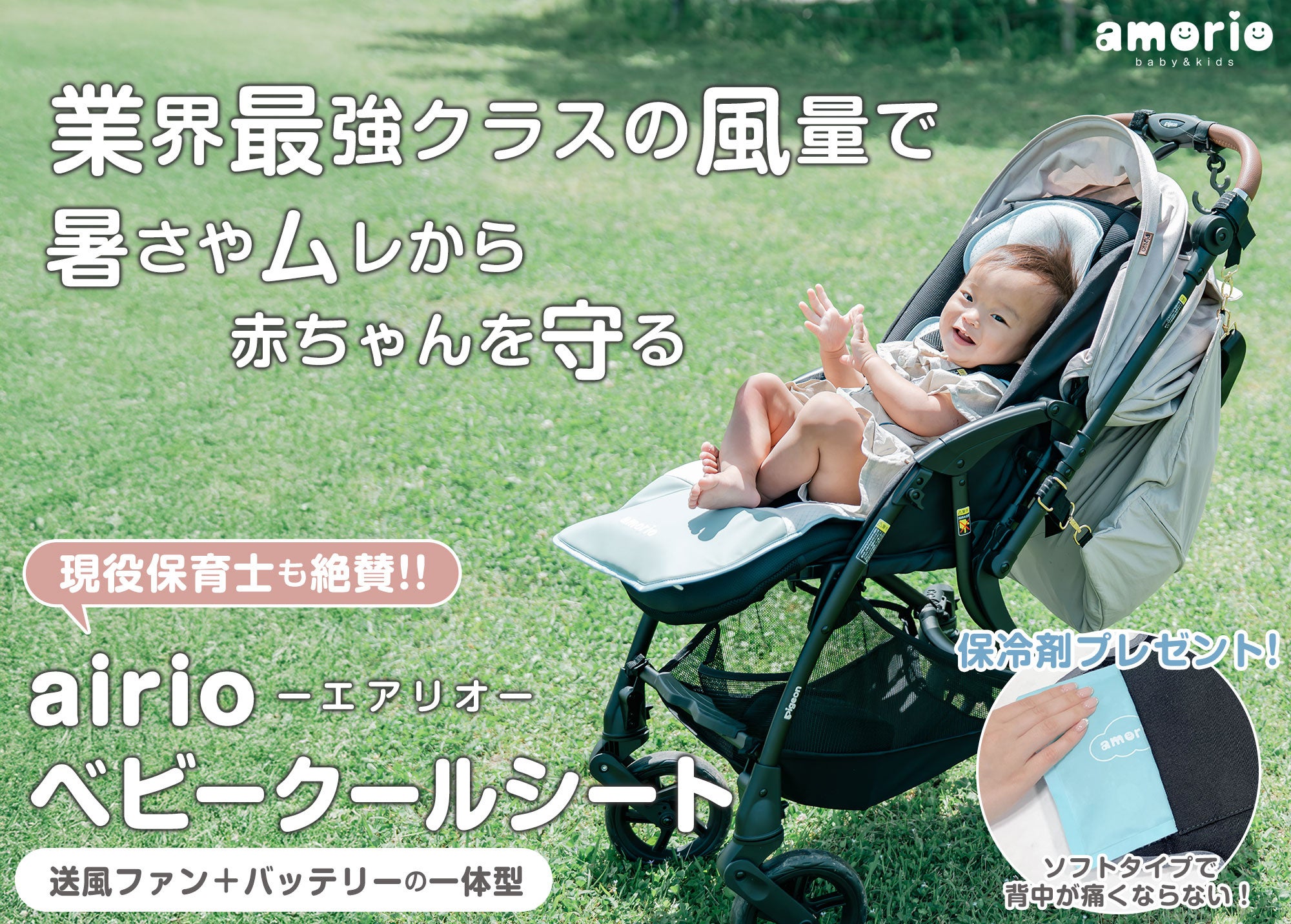 「エアリオ ベビークールシート」で赤ちゃんの笑顔と快適を守りましょう。