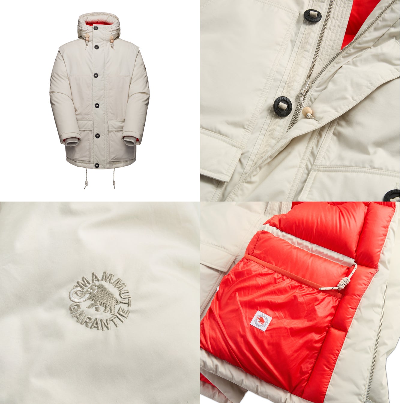 独自のスタイルで人気を誇る英国デザイナー、ナイジェル・ケーボンとのコラボレーションから生まれたパファージャケット。アウターシェルには、1930年代の開発以来、冒険家や登山家たちによって天候対策として活用されてきたVentile®素材を使用。遠征用パーカの原点に学びつつ、850cuinフィルパワーのグースダウンによって究極の暖かさを実現しました。フリース裏地付きの立体ポケット、胸ポケット、 MAMMUTロゴの刺繍がユニークなルックスを演出。時代の先駆者として道を切り拓いた登山家たちの偉業を称えるパーカージャケットです。