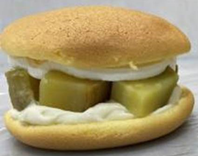 商品特徴:オムどらは、ふわふわしっとりのオムレット生地でクリームと焼き 芋のブロックをはさみ、どら焼き風の見た目の人気のスイーツです。急速冷凍し、半解凍、解凍でいつでも美味しく食べられるロングライフ商品にしました。