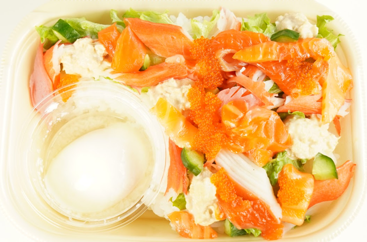 (3)商品名:混ぜて食べよう・温玉サーモンサラダ丼(わが社自慢の惣菜・べんとう部門)