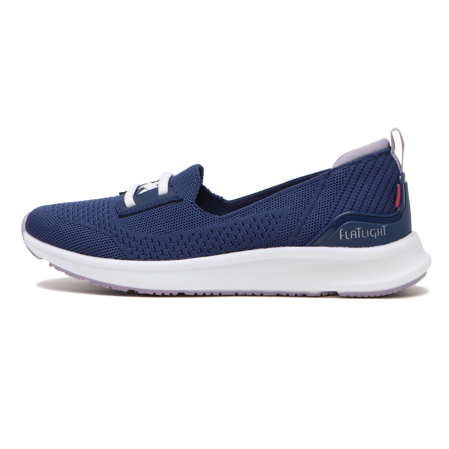 履き口が浅めのデザインによりスッキリとしたシルエットを演出し、フェミニンなコーディネートなどにおすすめです。また着脱が簡単なのも嬉しいポイントです。ニットで編み上げたデザインに加え、