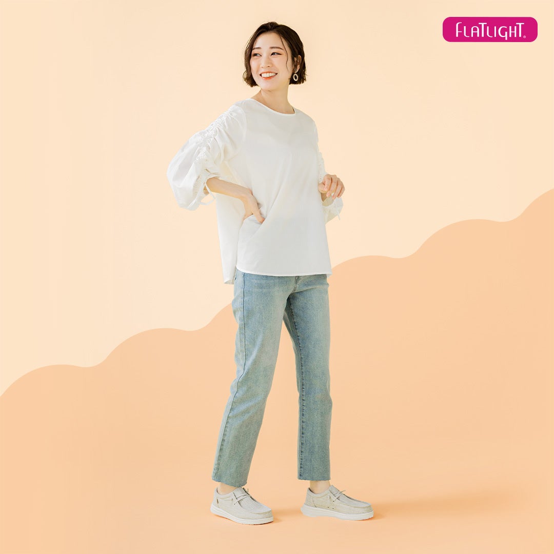 季節感あるさわやかなリネン素材を使用し、淡いカラー展開でジーンズ等のシンプルなスタイルに合わせやすい一足です。アッパーには、ゴアシューレースを採用し、脱ぎ履きの煩わしさを軽減しております。また、履き口内側は足当たりの優しいジャージ素材を使用しているため、足首をやさしくホールドしてくれます。さらに、ふんわりとしたクッション感のインソールを採用したことにより足をやさしく包み込みながら、軽量で返りの良いソールと心地良いインソールでリラックスした履き心地を実現しています。