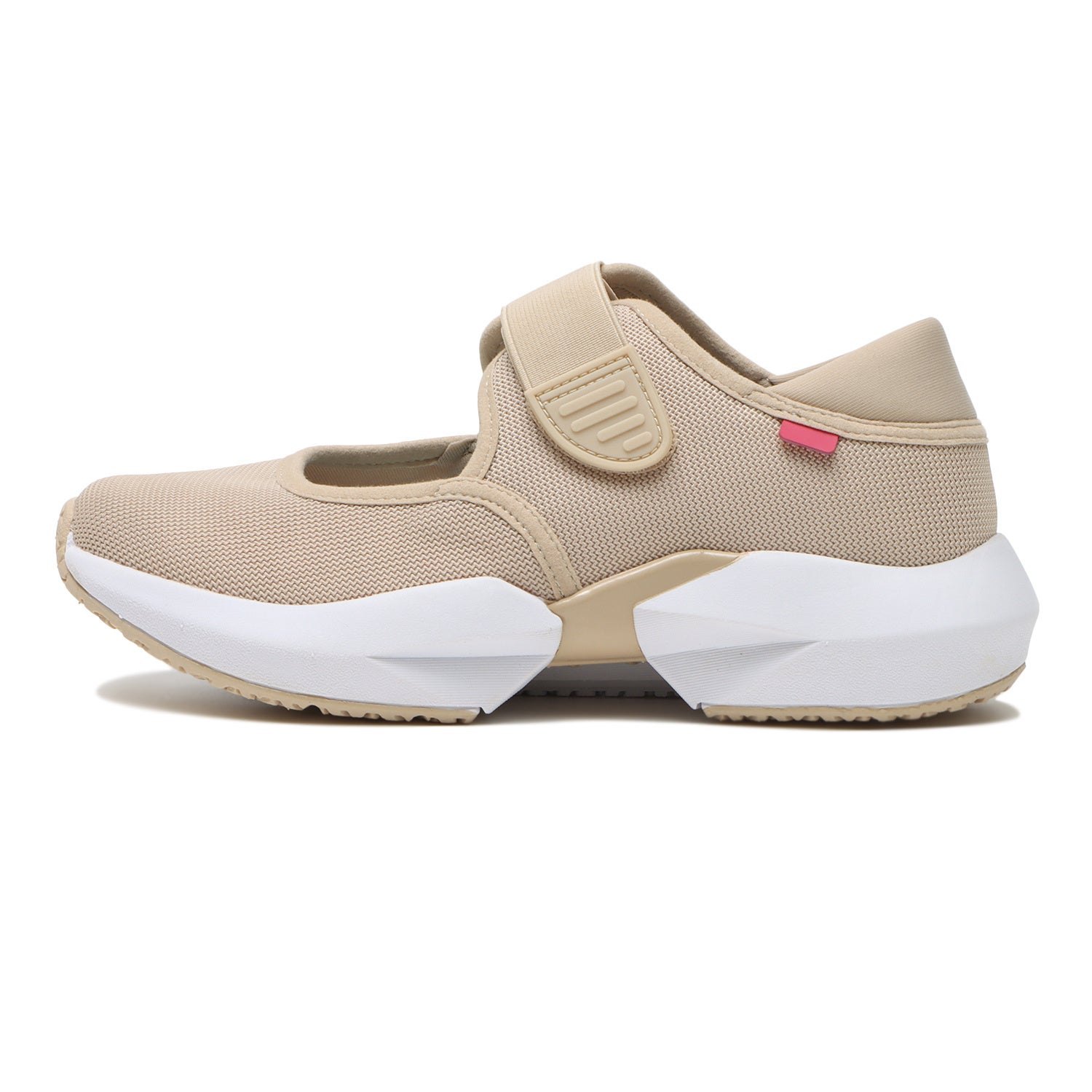 ロングスカート等と合わせたスタイリングもおすすめです。クッション性が高い素材を採用し、軽快な履き心地に加え、柔らかなインソールとニット素材のアッパーで足を包み込み、締め付けすぎない心地良いホールド感を実現しています。ストラップ仕様で、着脱が楽なのも嬉しいポイントです。
