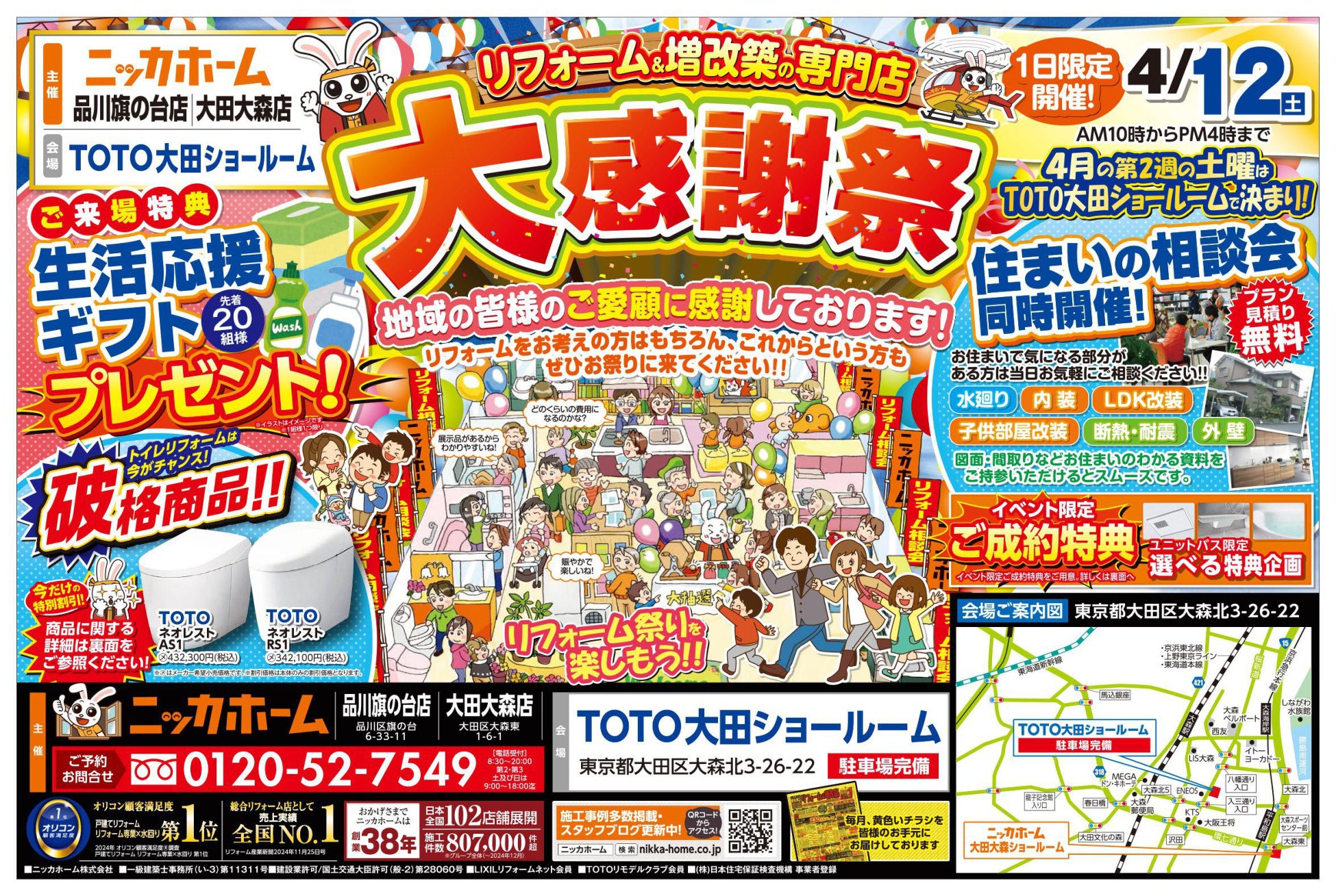 【東京都大田区・品川区在住の方 必見】大感謝祭を4月12日 1日限定開催決定‼【リフォーム&増改築 ニッカホーム】