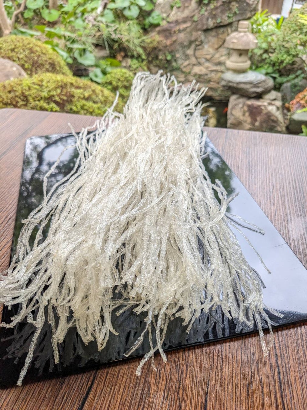 岐阜県恵那市産の希少な天然糸寒天「山岡細寒天」を使用。