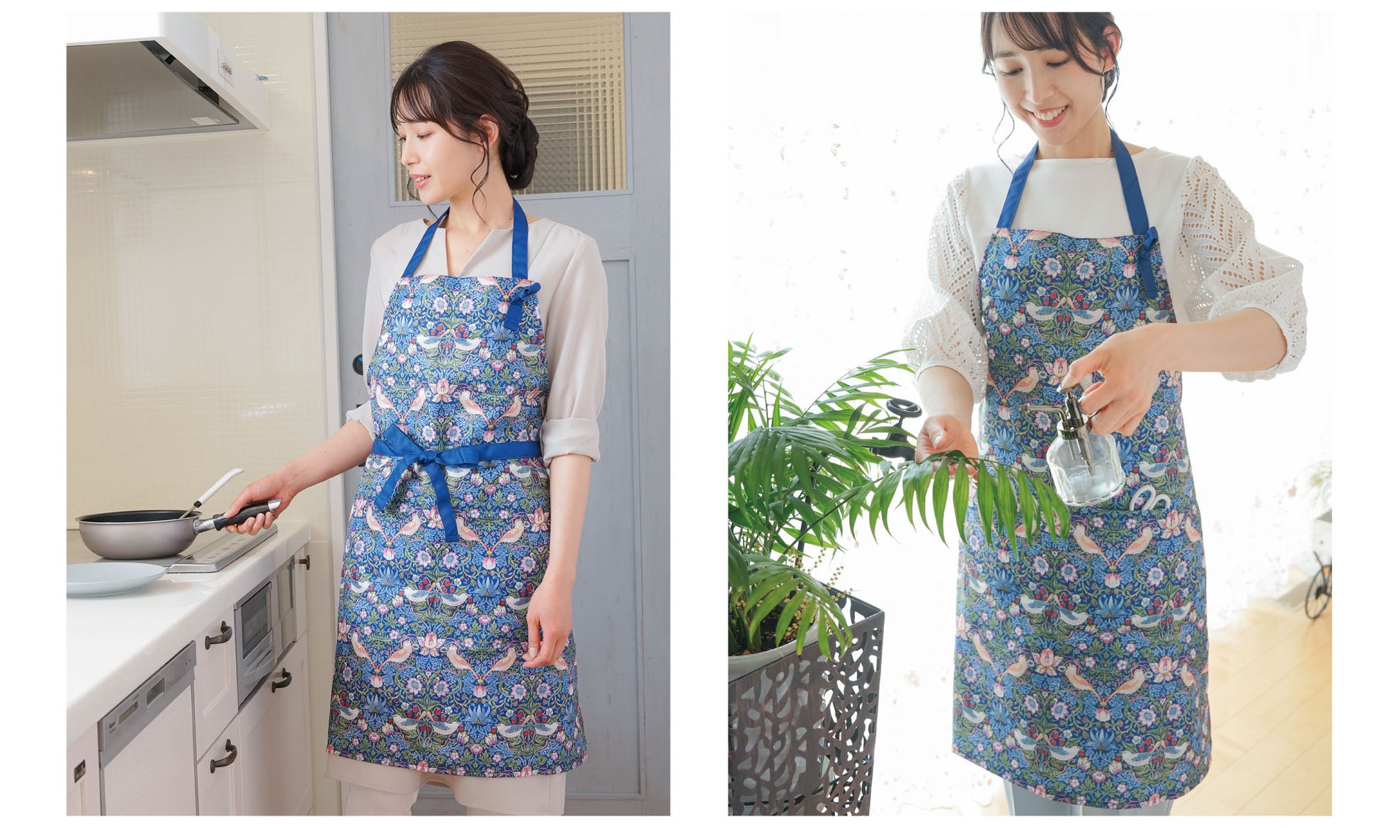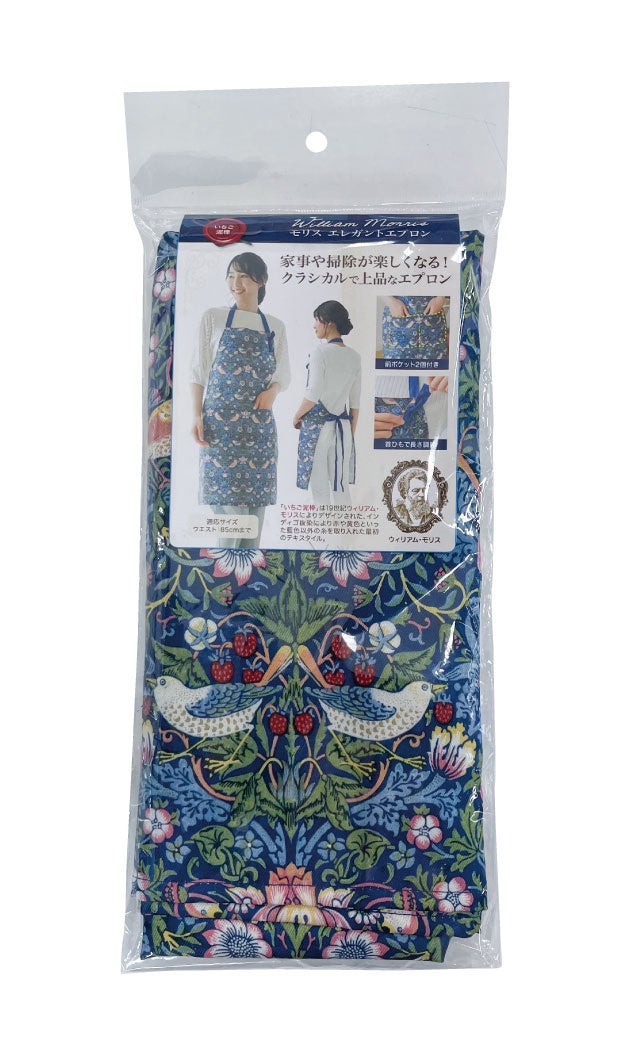 モリスの人気作「いちご泥棒」を全面にあしらったクラシカルで上品なエプロン。着るだけでパッと華やぎ気分も明るく♪