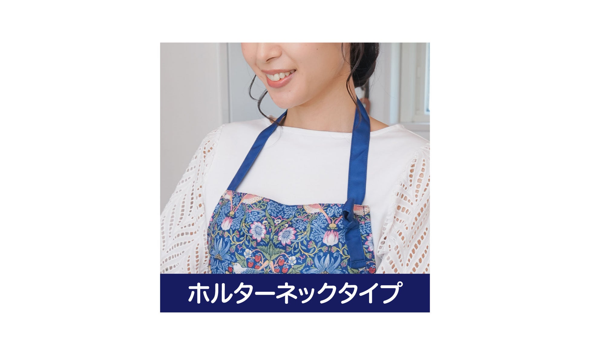 「モリス エレガントエプロン」は、ホルターネックで、サッと着脱することができます。