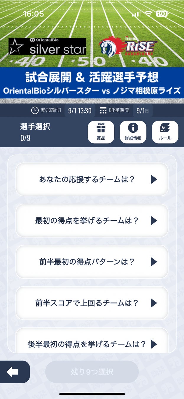 また、少しこだわった予想内容のマニアック予想も開催しており、こちらも同じく各チームのグッズやサイドライン観戦権をプレゼント!