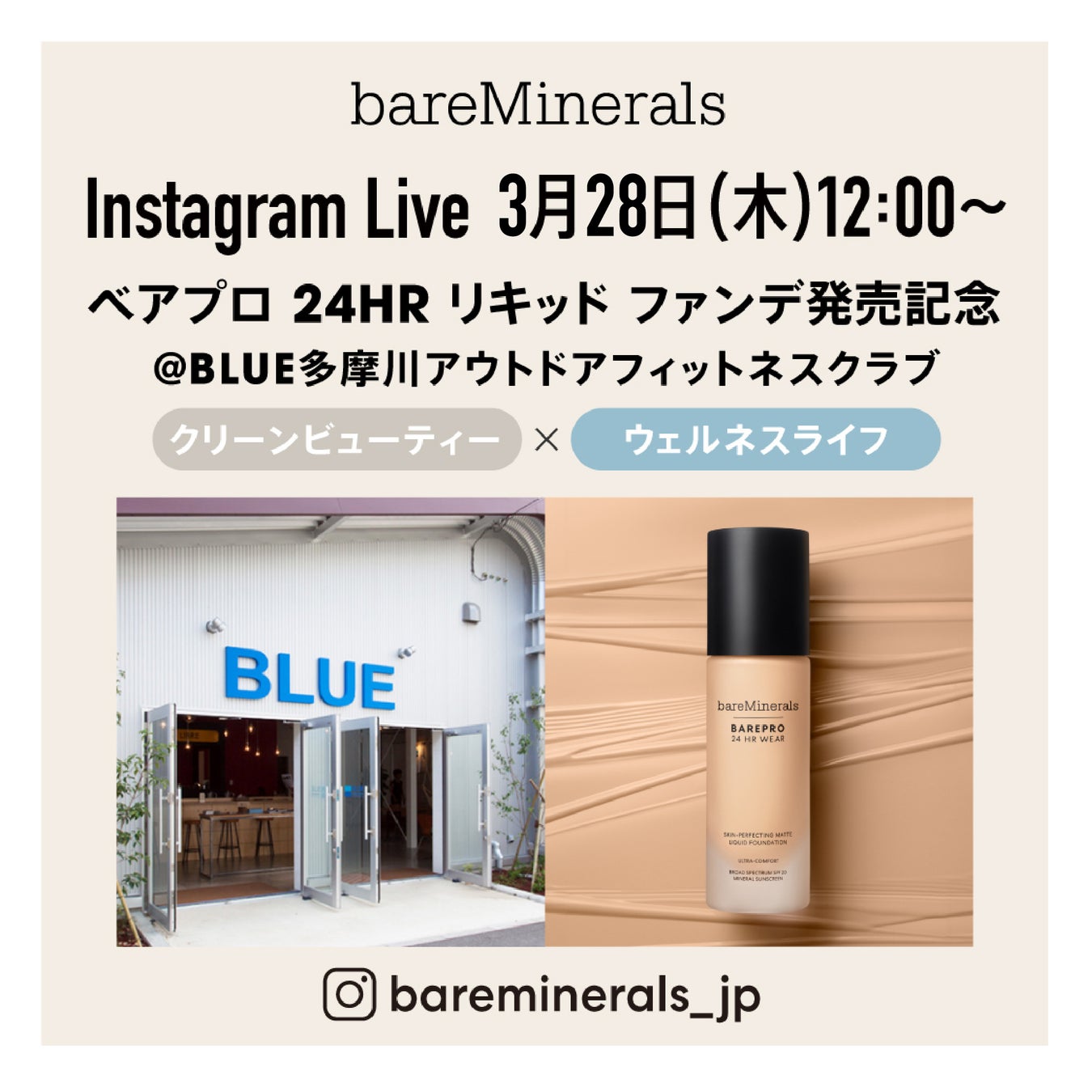 【ベアミネラル】「ベアプロ 24HR リキッド ファンデーション」3月1日発売記念。”クリーンビューティー×ウェルネスライフ”をテーマに、BLUE多摩川アウトドアフィットネスクラブとインスタライブ開催