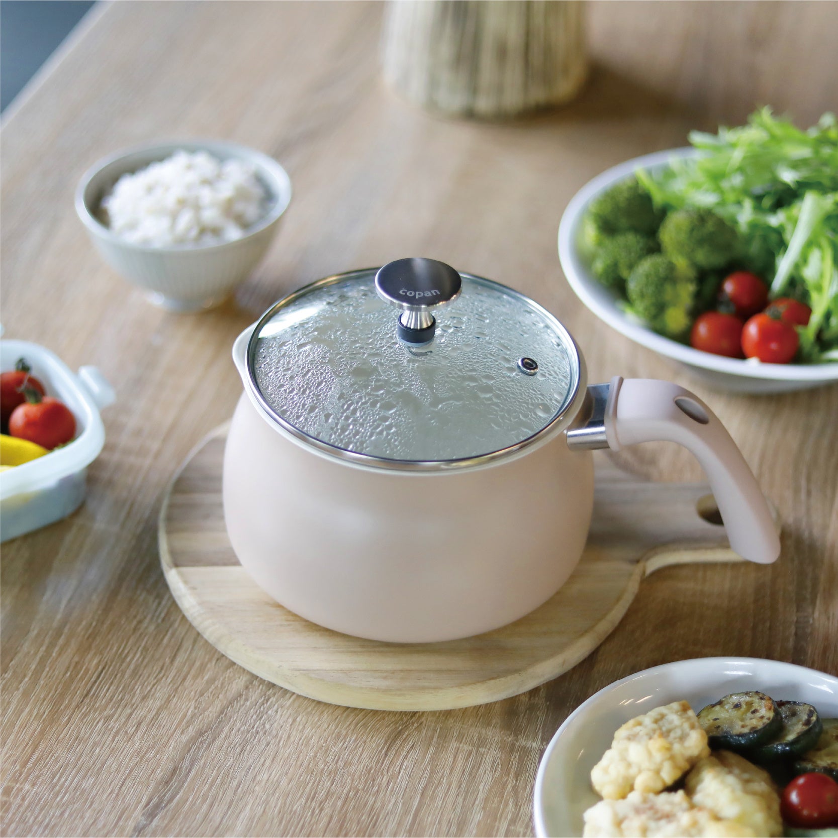 専用サイズのガラス蓋が付いているので、調理中の中身が見やすい。