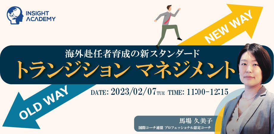 グローバル⼈材育成・研修業を⼿掛けるインサイトアカデミー株式会社(東京都港区、代表取締役:北村嘉章)は、2023年2月7日(火)11時より、無料webセミナー「【海外赴任者育成の新スタンダード】トランジション・マネジメント」を開催します。お申込み受付開を始しました。