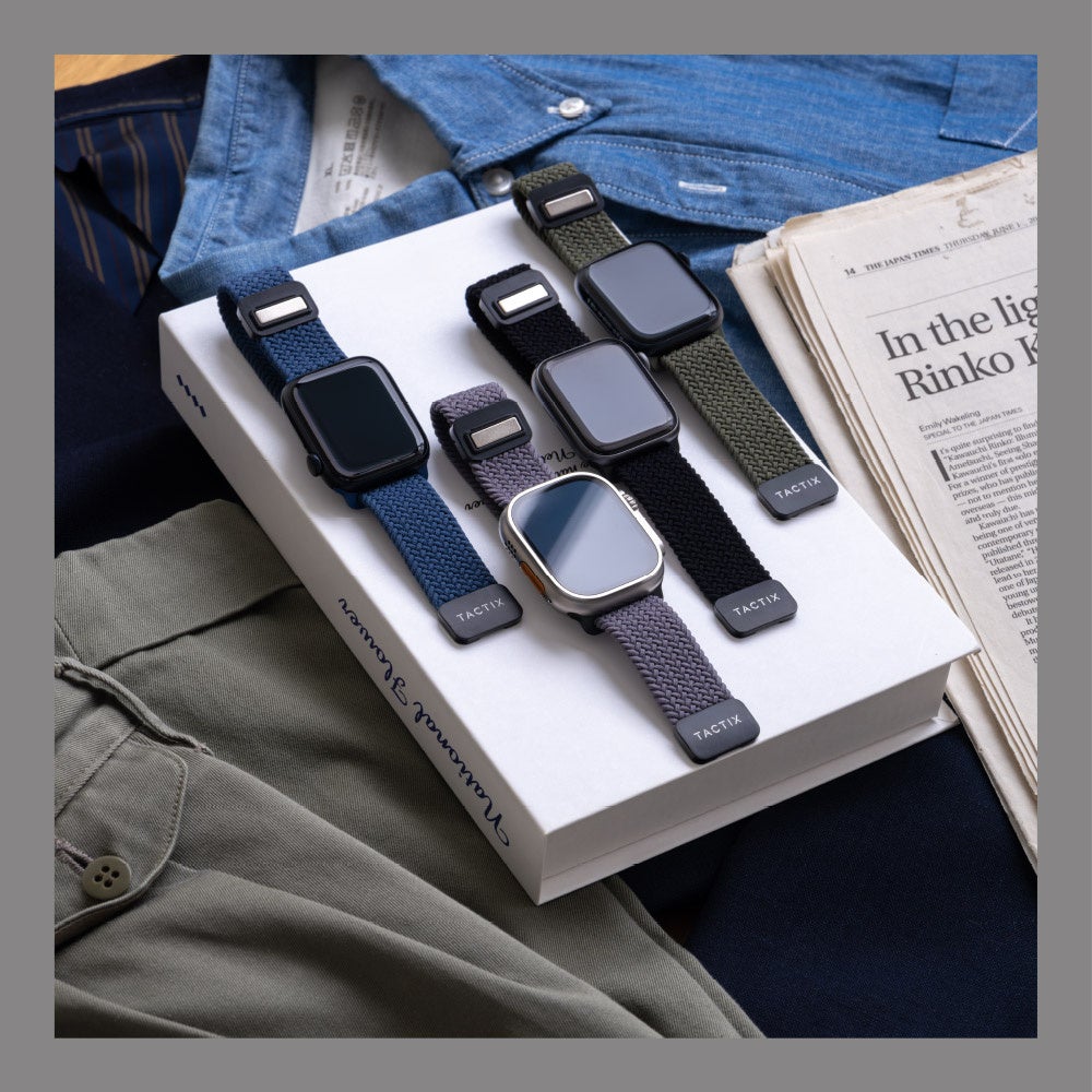 「アーバンミリタリー」をコンセプトとするTACTIX (タクトナイン)は、シンプルかつ都会的なデザインが特徴で、時代を超えて愛されるタクティカルファッションをより身近に、シーンレスに、どんなスタイルにもマッチするシンプルで「大人シック」なアイテムを提供します。Apple Watchのケースサイズ42mm、44mm、45mm、49mmに対応しています。