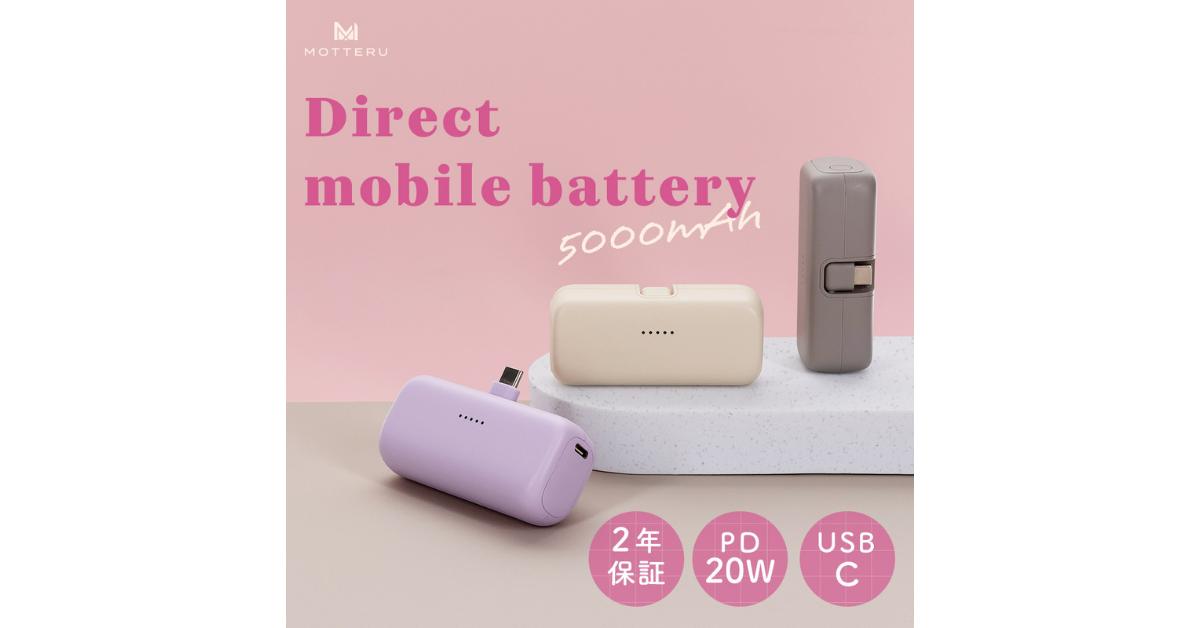 株式会社MOTTERU(モッテル)(本社:神奈川県海老名市、代表取締役:櫻田良太)は、USB-Cコネクタが一体になった5,000mAhのコンパクトモバイルバッテリーを2024年9月9日(月)からMOTTERU公式オンラインショップ含むECモールで販売を開始します。